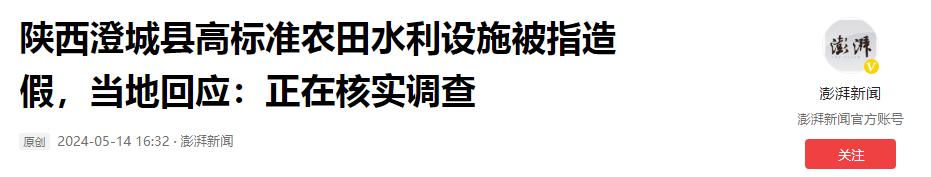 澎湃新聞《陝西澄城縣高標準農田水利設施被指造假,當地回應:正在覈實調查》