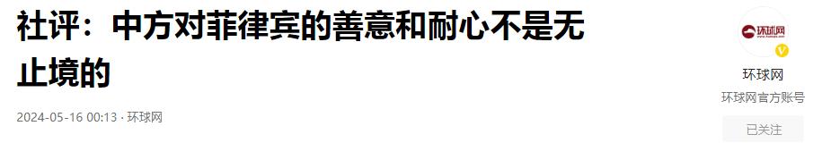 環球網《社評:中方對菲律賓的善意和耐心不是無止境的》
