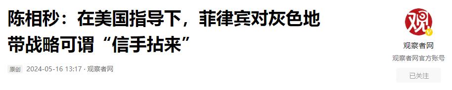 觀察者網《陳相秒:在美國指導下,菲律賓對灰色地帶戰略可謂“信手拈來”》