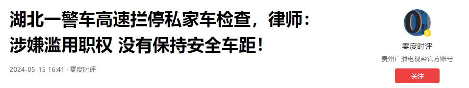 零度時評《湖北一警車高速攔停私家車檢查,律師:涉嫌濫用職權 沒有保持安全車距!》