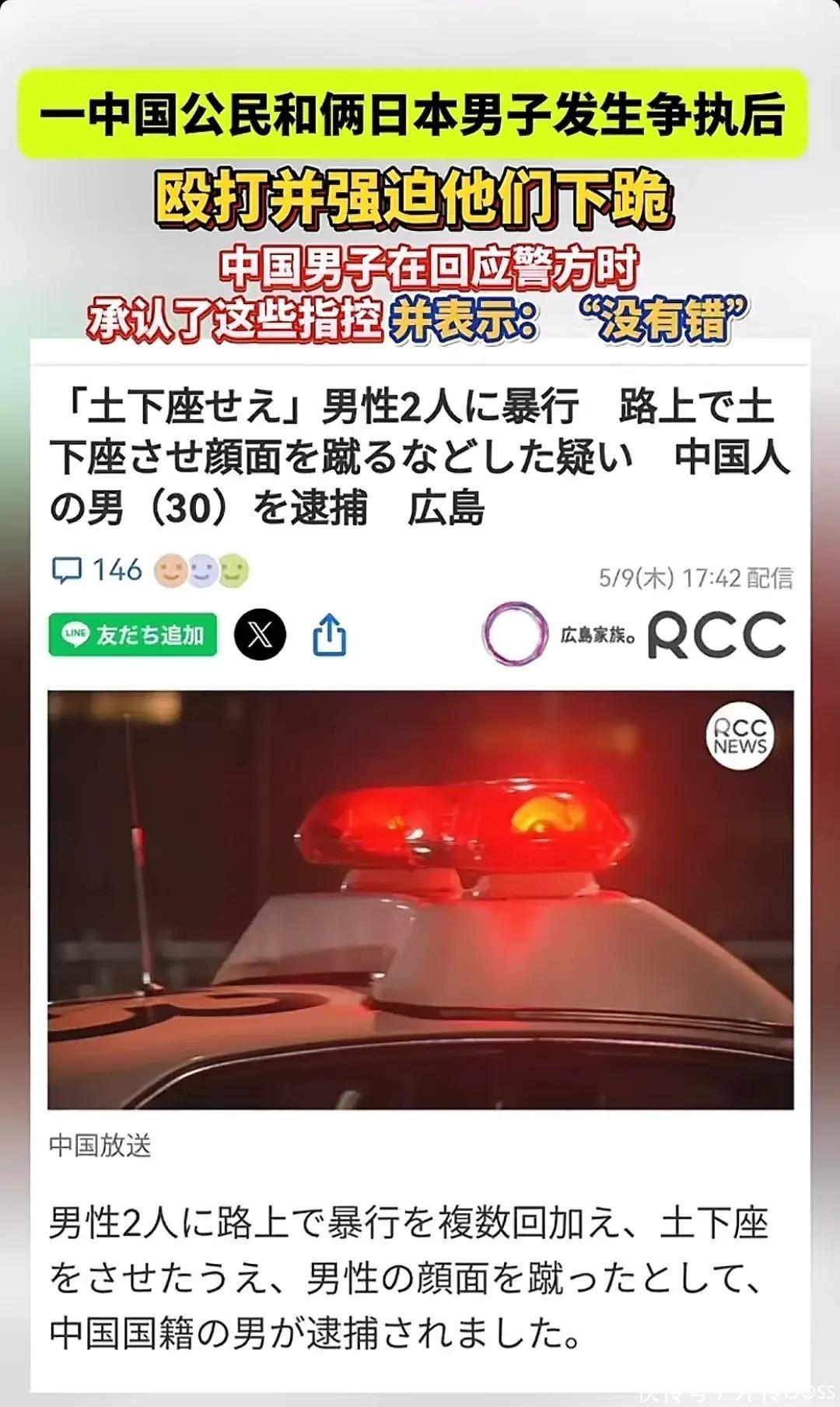 中國男子暴揍2名日本人,逼他們下跪道歉,被捕後日本網友震怒