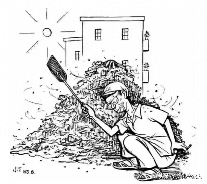 偶爾看到丁聰老前輩上世紀八十年代的漫畫:垃圾堆裏拍蒼蠅。