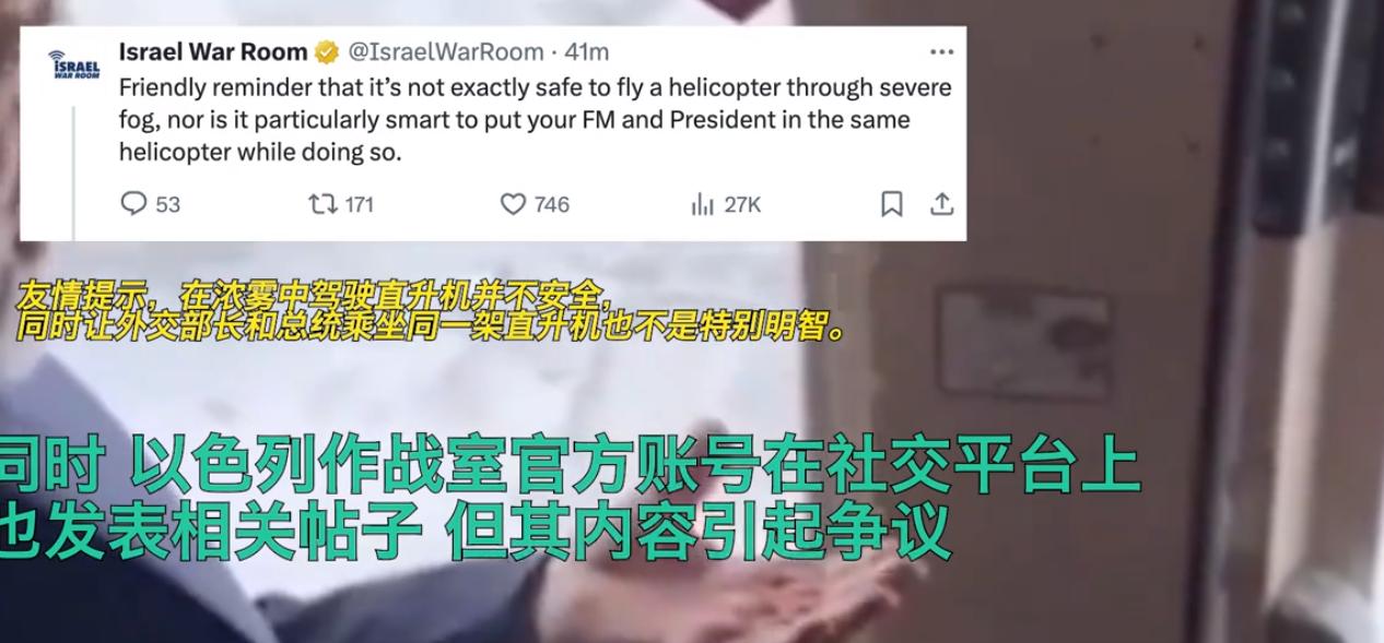 “友情提示,在濃霧中駕駛直升機並不安全,讓外交部長和總統同坐一架直升機的行爲並不明智。”