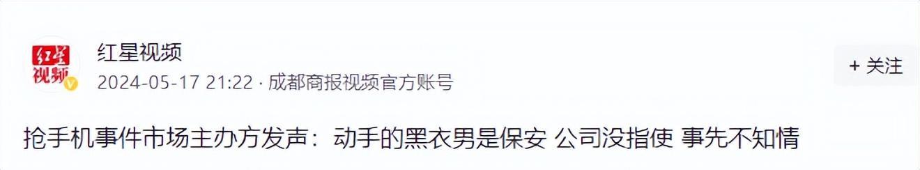 紅星視頻《搶手機事件市場主辦方發聲:動手的黑衣男是保安 公司沒指使 事先不知情》;