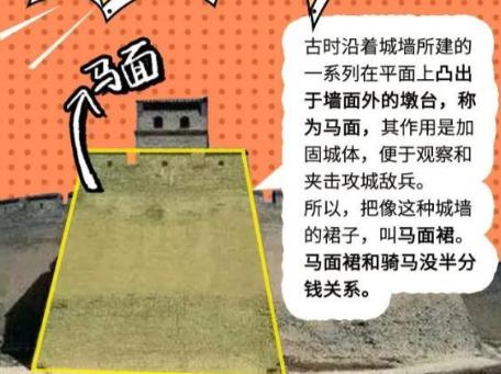 馬面裙始於明朝,由於當時城牆一塊凸起的牆體名叫馬面,這種裙子的設計類似城牆,故而得名“馬面裙”,最開始,馬面裙和騎馬沒有多大關係。