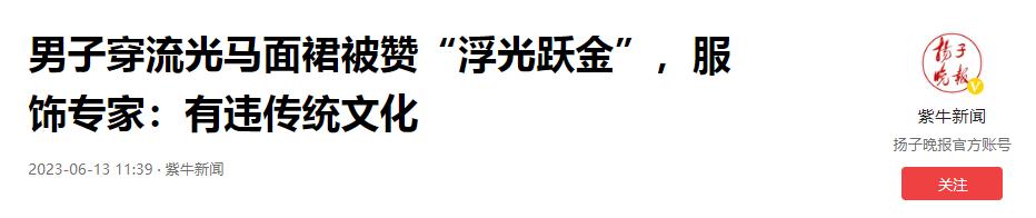 紫牛新聞《男子穿流光馬面裙被贊“浮光躍金”,服飾專家:有違傳統文化》