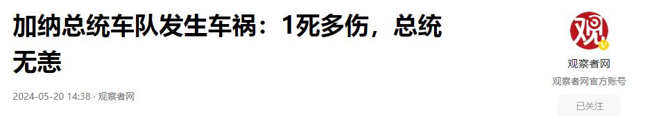 觀察者網《加納總統車隊發生車禍:1死多傷,總統無恙》