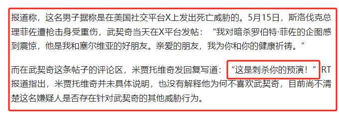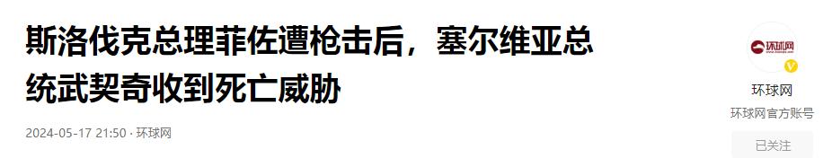 環球網《斯洛伐克總理菲佐遭槍擊後,塞爾維亞總統武契奇收到死亡威脅》