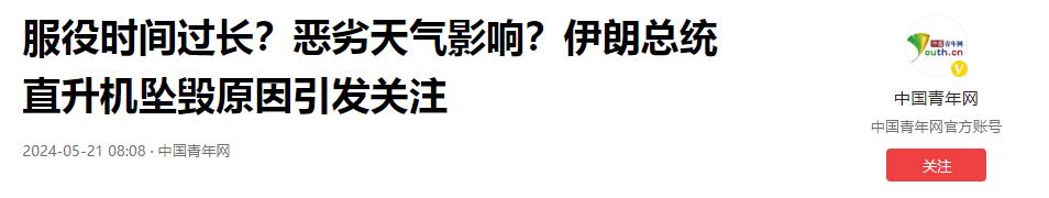 中國青年網《服役時間過長?惡劣天氣影響?伊朗總統直升機墜毀原因引發關注》