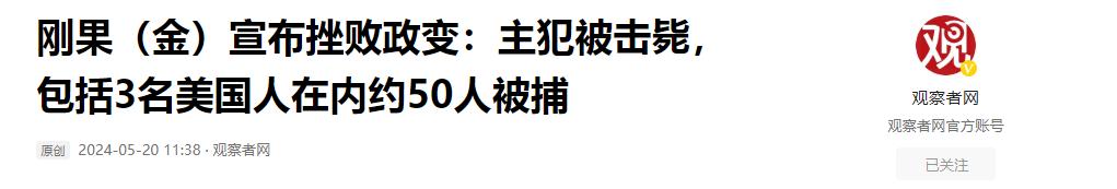 觀察者網《剛果(金)宣佈挫敗政變:主犯被擊斃,包括3名美國人在內約50人被捕》