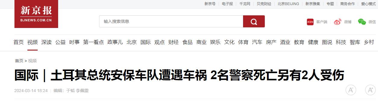 新京報官網《國際|土耳其總統安保車隊遭遇車禍 2名警察死亡另有2人受傷》