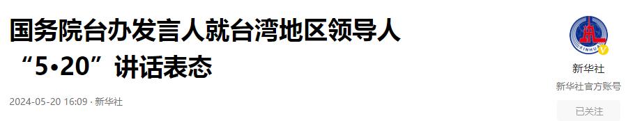 新華社《國務院臺辦發言人就臺灣地區領導人“5·20”講話表態》