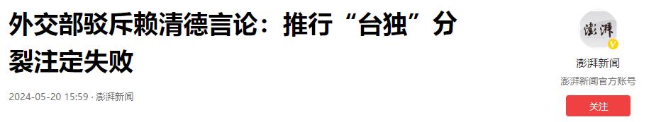 澎湃新聞《外交部駁斥賴清德言論:推行“臺獨”分裂註定失敗》