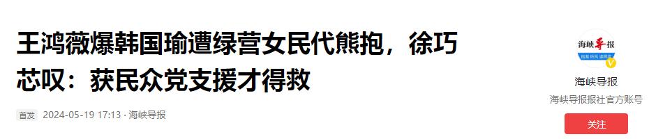 海峽導報《王鴻薇爆韓國瑜遭綠營女民代熊抱,徐巧芯嘆:獲民衆黨支援才得救》