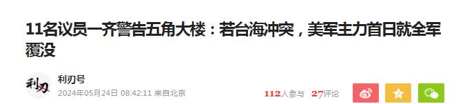 根據美國媒體在5月9日的報道,美國曾有11名議員,前往五角大樓發出警告,其表示:“一旦臺海發生衝突,美軍主力首日就全軍覆沒。”