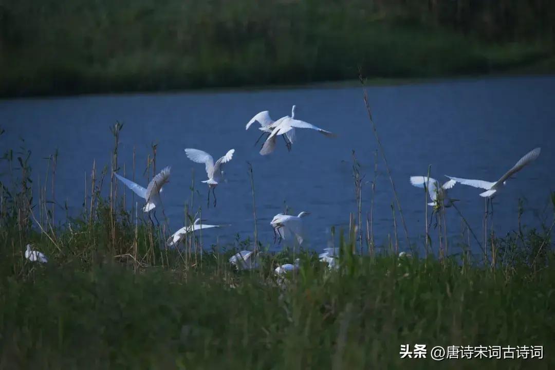 “水滿有時觀下鷺,草深無處不鳴蛙。”頷聯是說,湖水滿溢時,白鷺翩翩飛舞;草長茂盛處,鳴蛙處處都是。這是寫“初夏之動景”。
