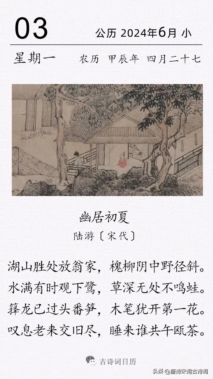“嘆息老來交舊盡,睡來誰共午甌茶。”尾聯是說,人老之後,當年相識都不見了,不由得一聲嘆息。午睡醒來,夢迴茶前,誰人共話當年事?這是寫“初夏之人事”。