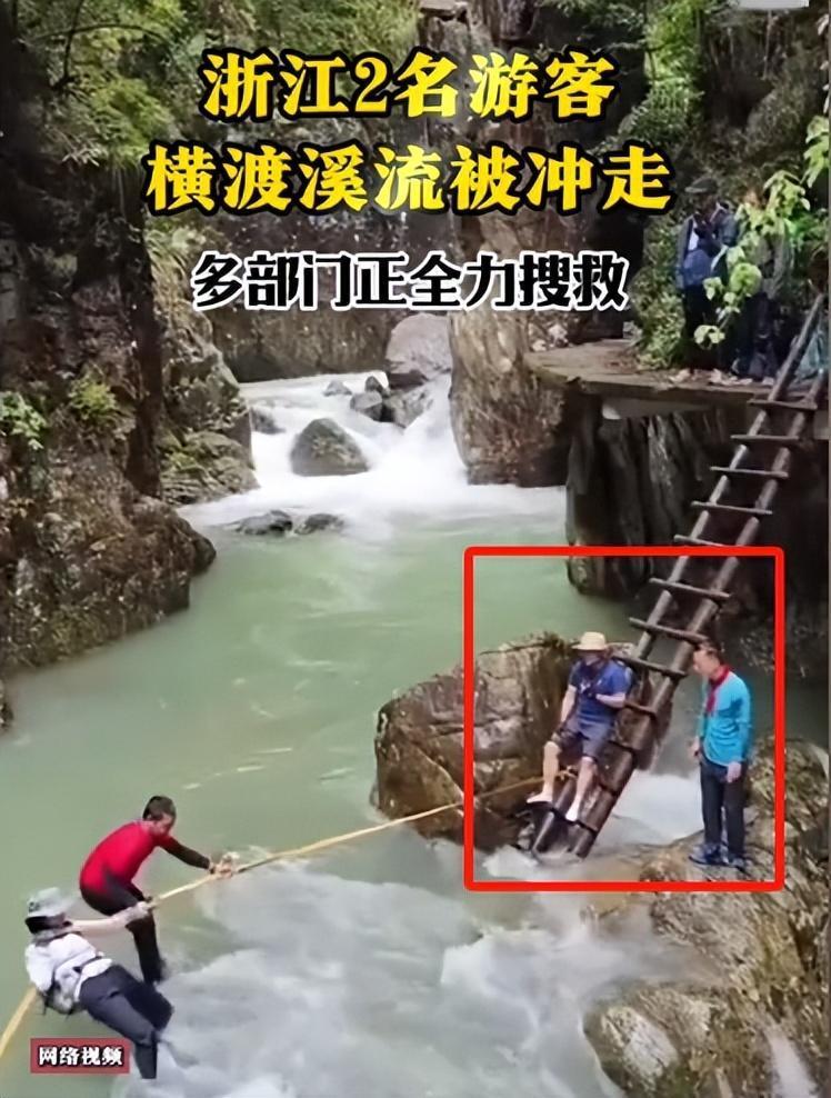 浙江2人被沖走後續,細節被扒,抽菸男2個動作或致落水男女遭大難