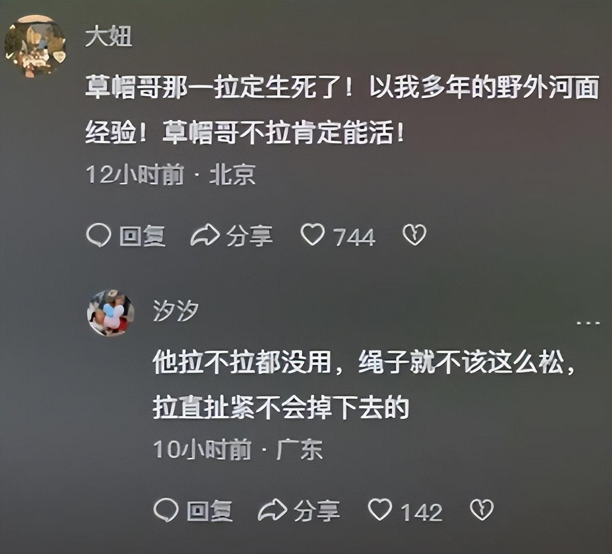 面對這樣的情況,網絡上衆說紛紜,有人認爲是男子並沒有出盡全力,也有人認爲在這麼湍急的河水中橫渡,本身就是一件危險的事情。