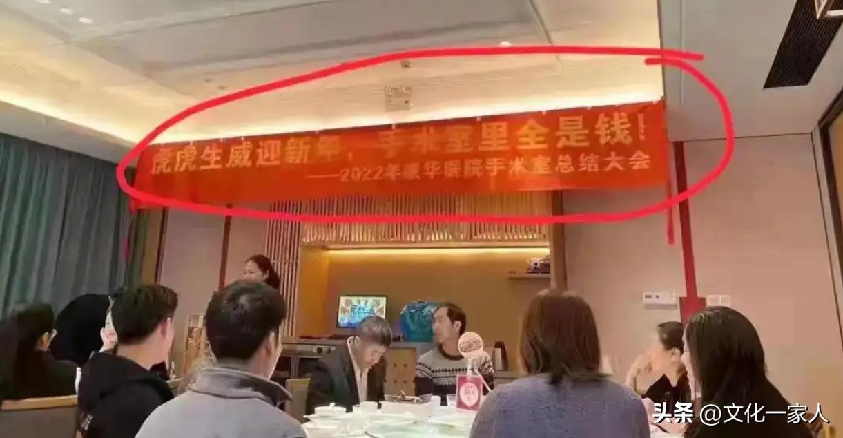 這是2022年某醫院手術室總結大會上的橫幅。他們把患者當成提款機,無視他人的痛苦,把榨取患者錢財當成自己的榮譽,而且公然炫耀。其卑鄙無恥的嘴臉暴露無遺!
