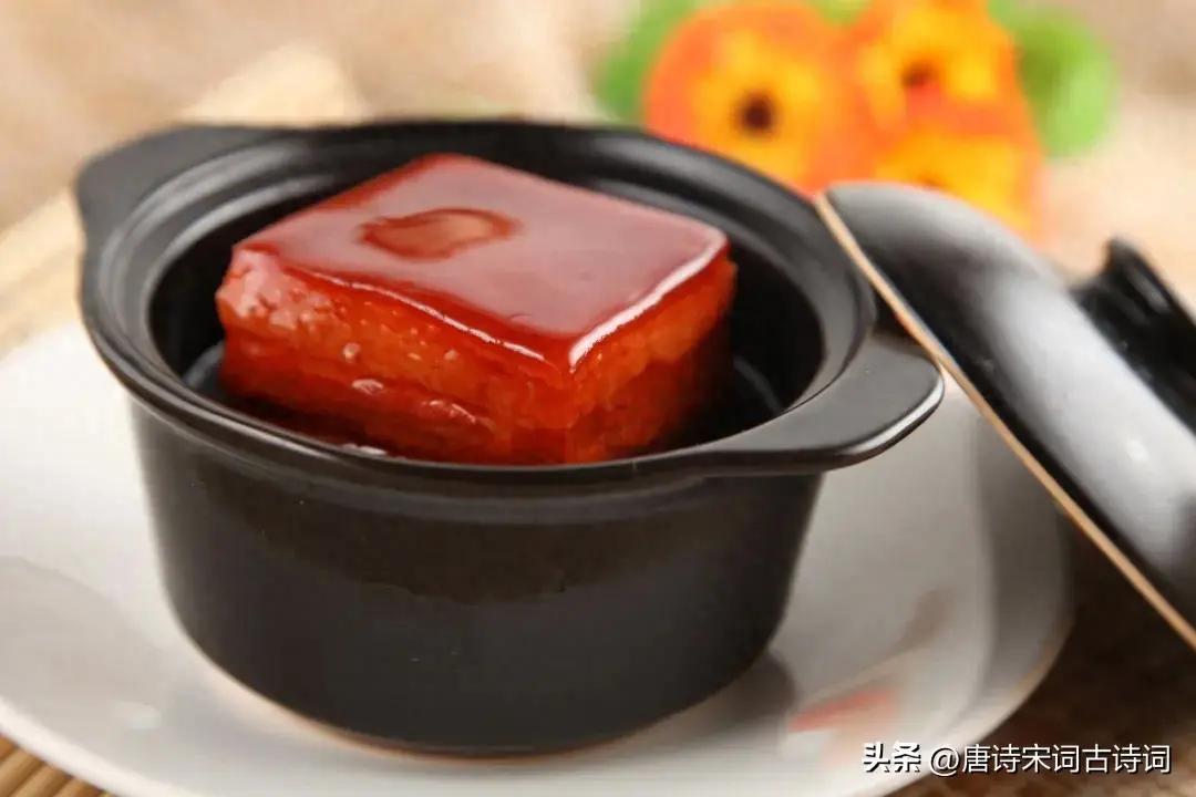 蘇軾是一個肉食主義者,對於豬肉,他是沒辦法抗拒的。雖然被貶到黃州,但是他很快發現,黃州這個地方,出產好豬肉。對於豬肉的做法,他也有着自己的心得。把炊具洗乾淨了,少放一些水,慢慢地煮,時候到了,它自然風味鮮美,又好消化。黃州這裏豬肉便宜,貴人們不喜歡喫,而老百姓又不會煮,還有誰比蘇軾更懂得豬肉呢?早晨起來,先幹兩碗豬肉,喫得飽飽的,萬事足矣。