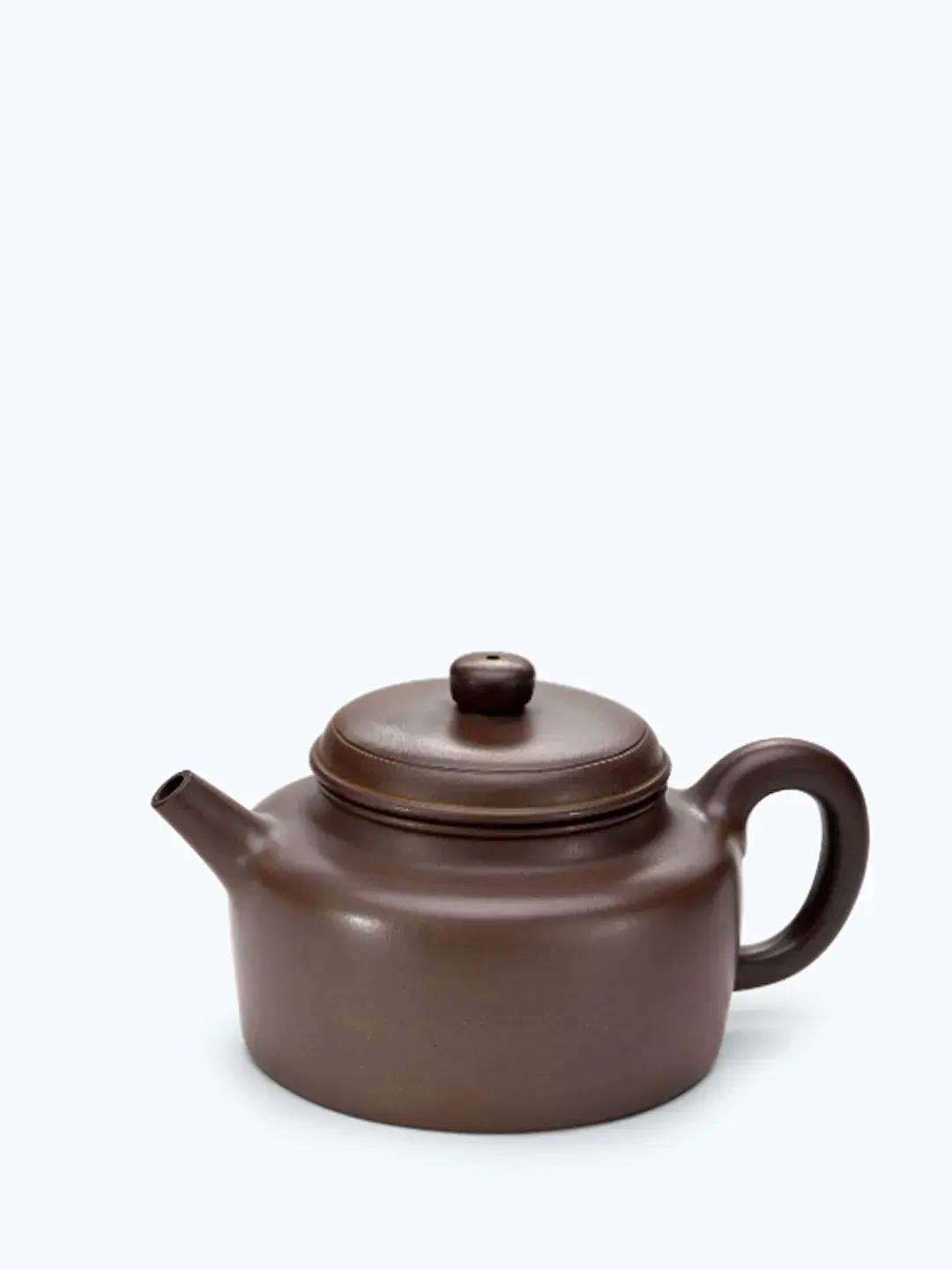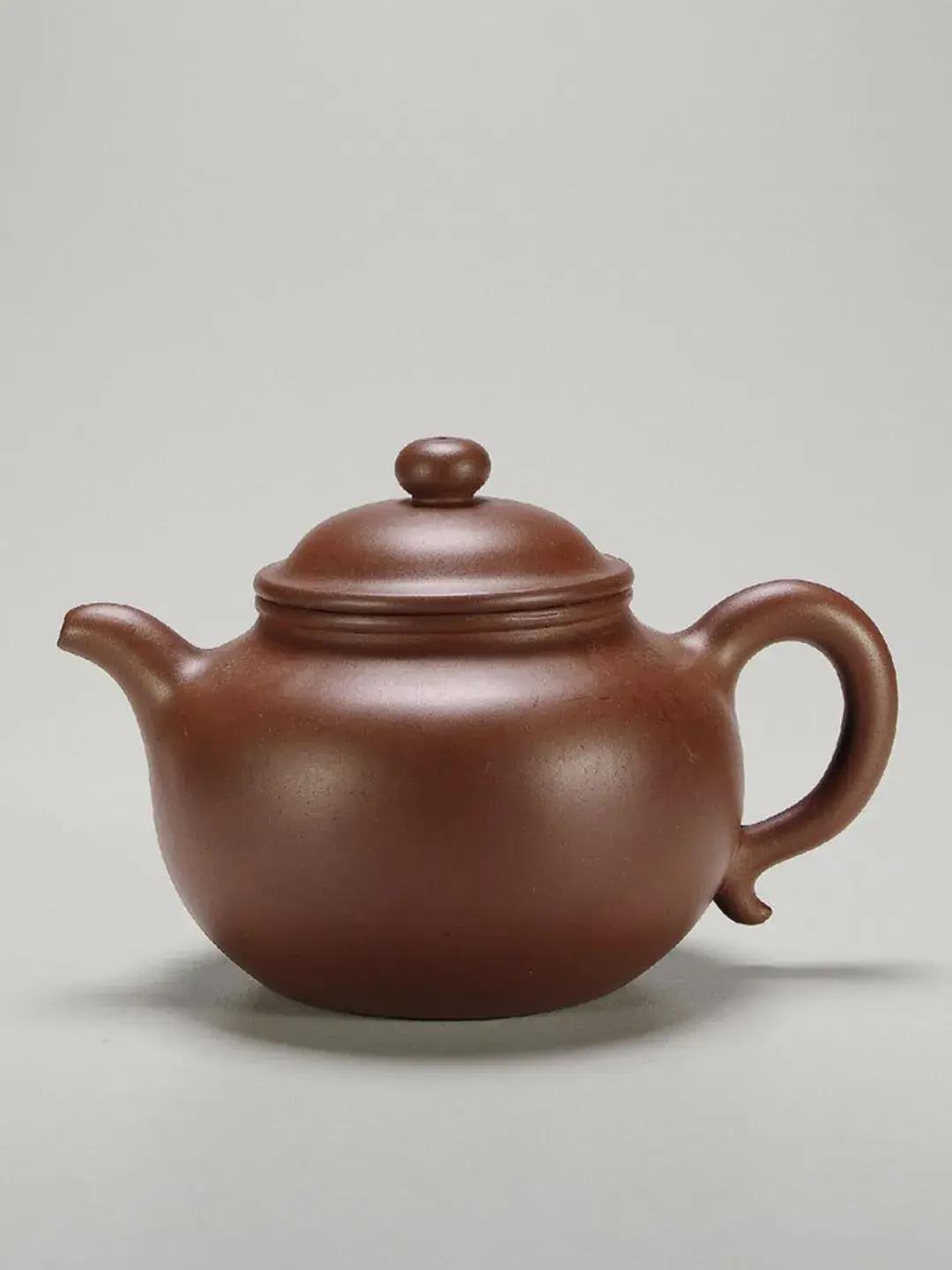 觀復博物館力追大亨掇只“骨肉亭勻”之姿,經長久琢磨推敲,在經典大亨掇只壺的基礎上,結合同爲大亨傳器的掇球壺、蓮子壺和垂耳仿古壺造型特點,創制觀復逸格紫泥大掇只壺▼