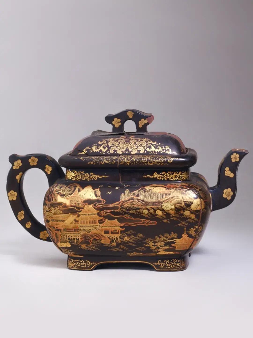 清 宜興窯紫砂黑漆描金茶壺 故宮博物院藏