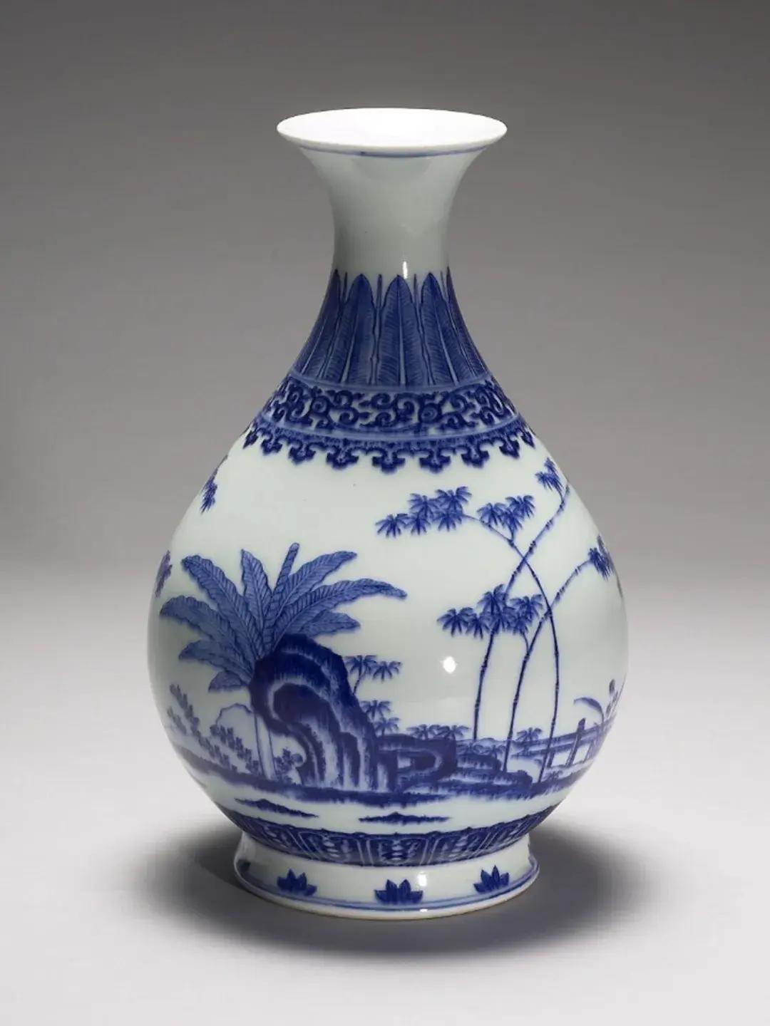 清乾隆 青花芭蕉玉壺春瓶 臺北故宮博物院藏