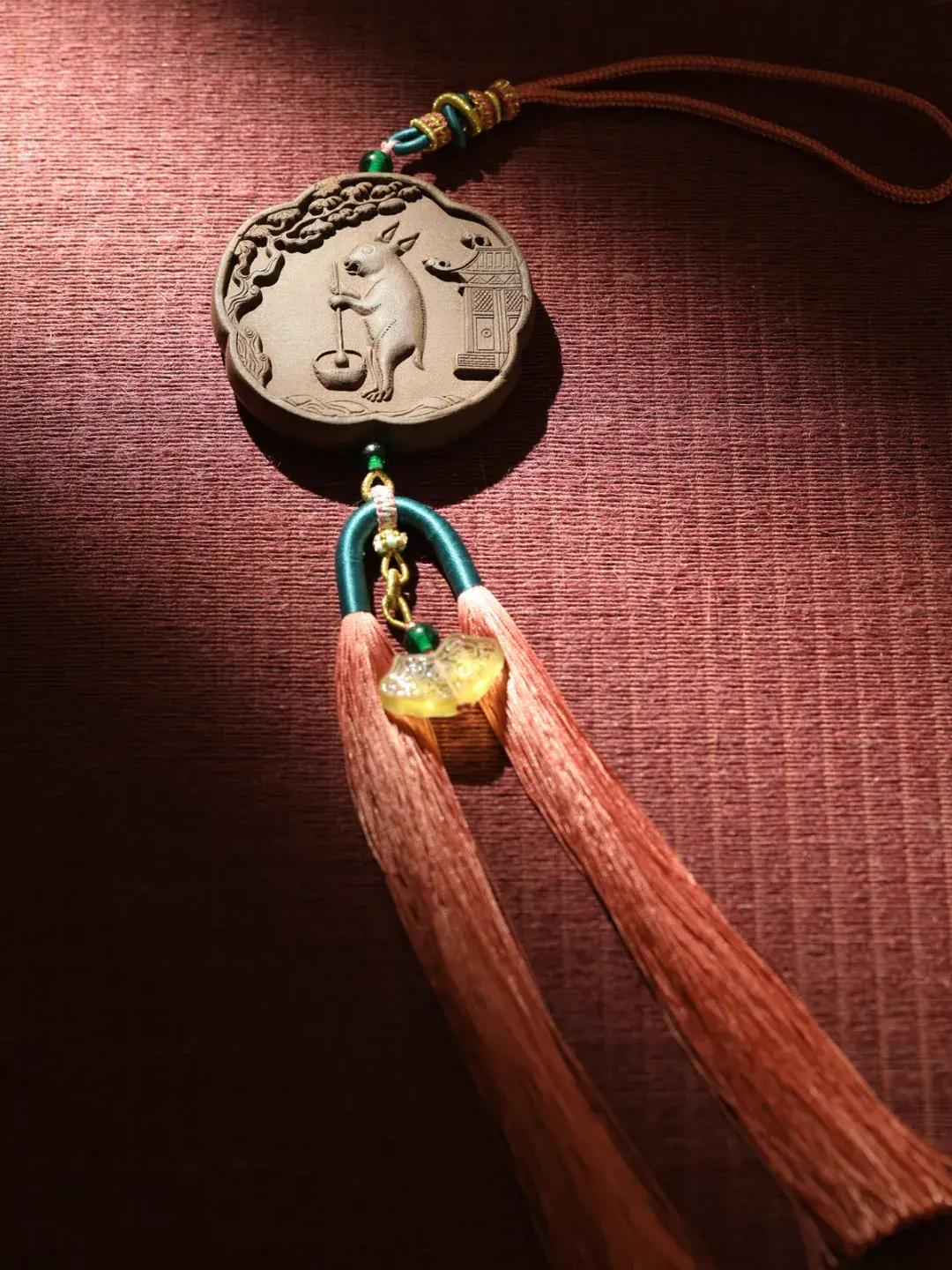 觀復博物館採擷古代香學之吉光片羽,以清宮醫藥檔案中的傳統香方“延齡益壽丹”爲配比基礎,結合館藏珍品[明銅鎏金月宮玉兔搗藥器蓋]裝飾元素,推出紫氣香韻系列之仙宮月德合香掛飾▼
