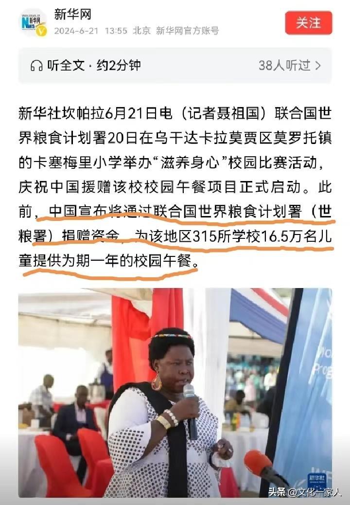 至於資助非洲兒童學生的餐食,是國家響應聯合國糧食計劃署在非洲開展“滋養身心”活動的捐贈。是實行革命的人道主義。這顯然不僅是國家大事,而且也是世界大事。