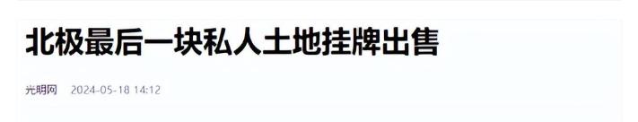 參考信源:參考消息,2024-05-18,《北極最後一塊私人土地掛牌出售》