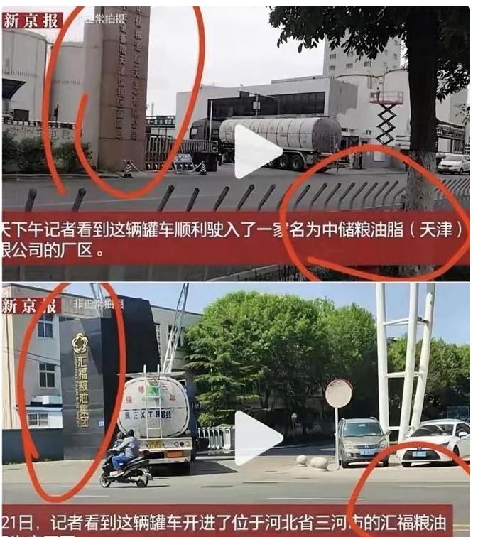 記者曝光的是5月21日上午10點,一輛油罐車進入河北燕郊的一家糧油公司,在公司內待了一個月之後,就帶着30多噸大豆油從廠區離開。看上去這個操作並沒有任何問題,畢竟在廠區裝油的視頻人們並未看到。
