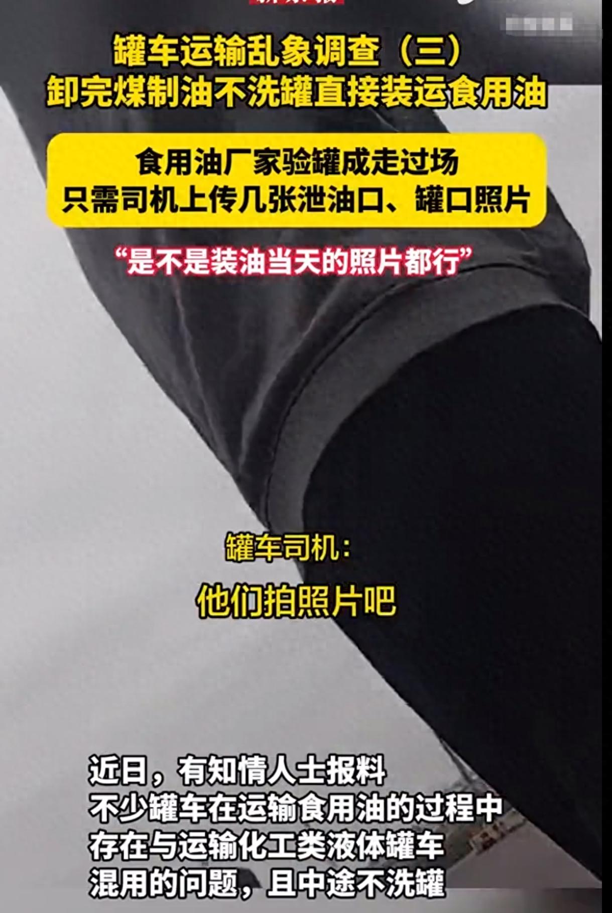針對於爲何在裝完煤制油之後,直接裝載食用油,記者也從司機口中得知了相關答案,一般情況下,司機都會在卸貨地附近進行配貨,不能空車跑回來。
