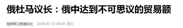 《俄杜馬議長:俄中達到不可思議的貿易額》---俄羅斯衛星通訊社