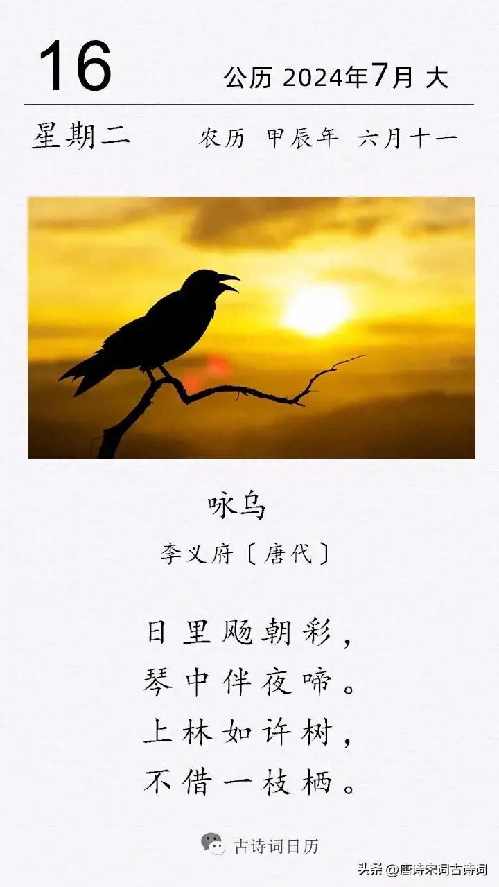 “日裏颺朝彩,琴中伴夜啼。”颺,同“揚”。“朝彩”,早上的陽光。“夜啼”,樂府曲中有《烏夜啼》。一二句是說,早晨,烏鴉要像太陽把光輝灑滿大地;夜晚,還要伴着《烏夜啼》的琴聲啼叫。這是寫“烏鴉之勤奮”。