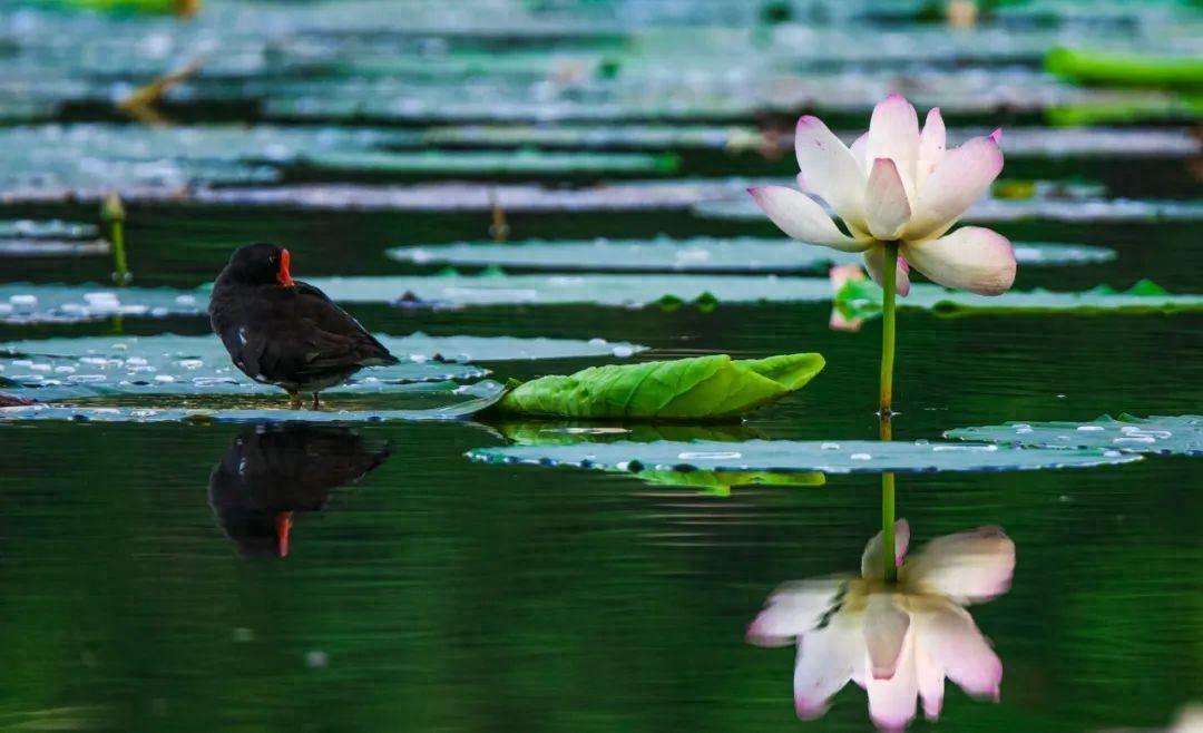 真是一幅悠然的畫作,樓臺倒影、清池送爽、花香撲鼻,任誰都會沉浸在這無邊的清涼舒適之中吧!