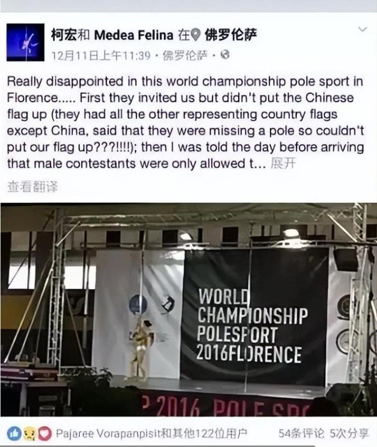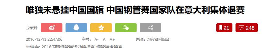 參考信源:《唯獨未懸掛中國國旗 中國鋼管舞國家隊在意大利集體退賽》觀察者網