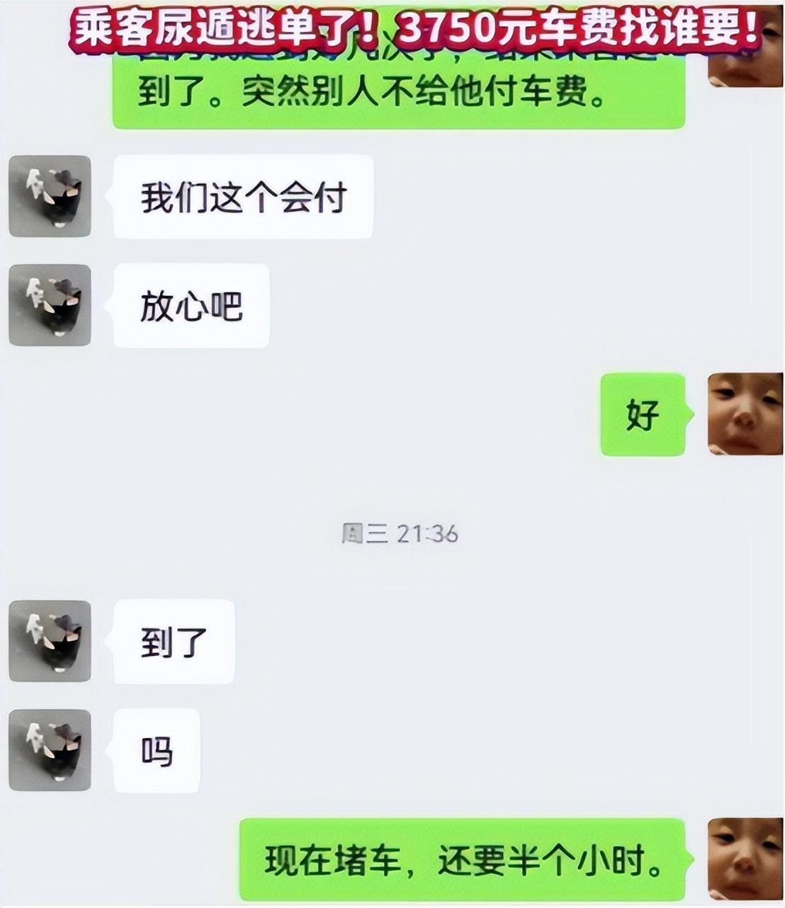 網約車接3750元到付大單,三乘客尿遁逃單,民警介入,領班代付
