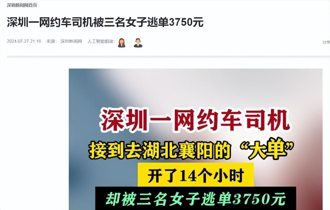 深圳一網約車司機被三名女子逃單3750元2024-07-27 21:18來源: 深圳新聞網】