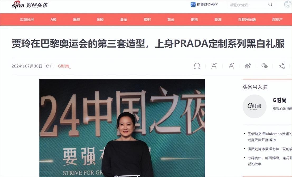 賈玲在巴黎奧運會的第三套造型,上身PRADA定製系列黑白禮服2024年07月30日 10:11——財經頭條】