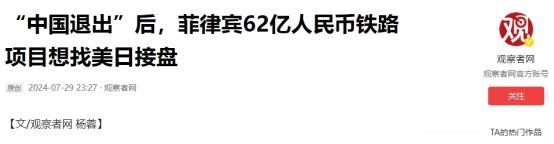 “中國退出”後,菲律賓62億人民幣鐵路項目想找美日接盤原創2024-07-29 23:27·觀察者網】