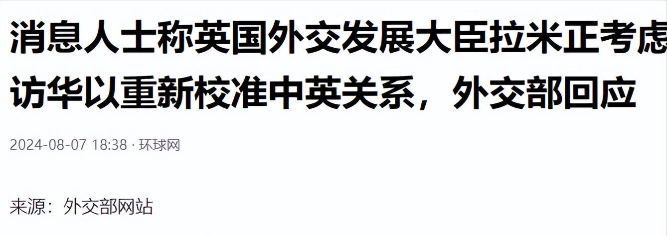 環球網2024-08-07-18:38“消息人士稱英國外交發展大臣拉米正考慮訪華以重新校準中英關係,外交部回應”