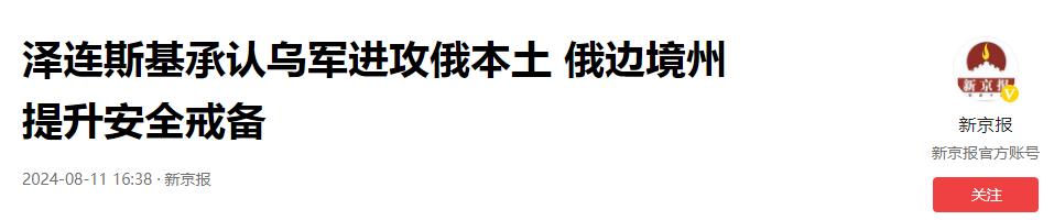 新京報 2024-08-11 16:38“澤連斯基承認烏軍進攻俄本土 俄邊境州提升安全戒備”