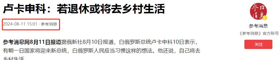 盧卡申科稱自己不一定會永遠擔任白俄羅斯總統,在不遠的將來白俄羅斯也會更換領導人。