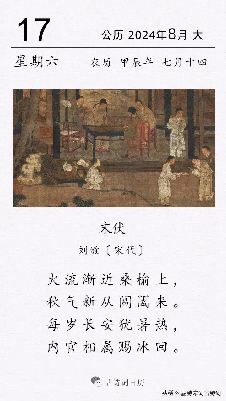 末伏日,得到皇帝御賜冰塊,不僅消解了物理上的炎熱,也給予詩人心靈莫大的慰藉,這樣的末伏日,詩人過得是極其愜意的。但願,每一個人在末伏時光,能夠找到屬於自己的快樂世界,不辜負每一寸光陰。