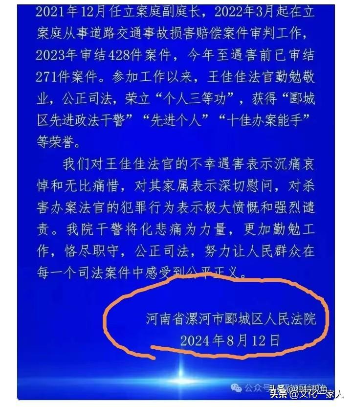 河南漯河的王姓女法官被殺,已沸沸揚揚鬧了好長時間。