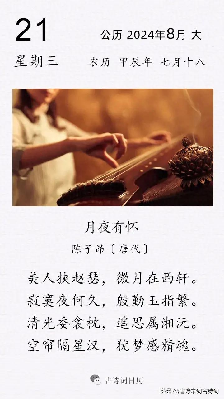 這是唐代詩人陳子昂的一首月下懷人詩。