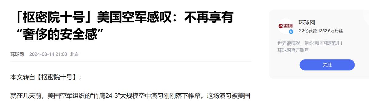 環球網 2024-08-14 14:12“「樞密院十號」美國空軍感嘆:不再享有“奢侈的安全感”