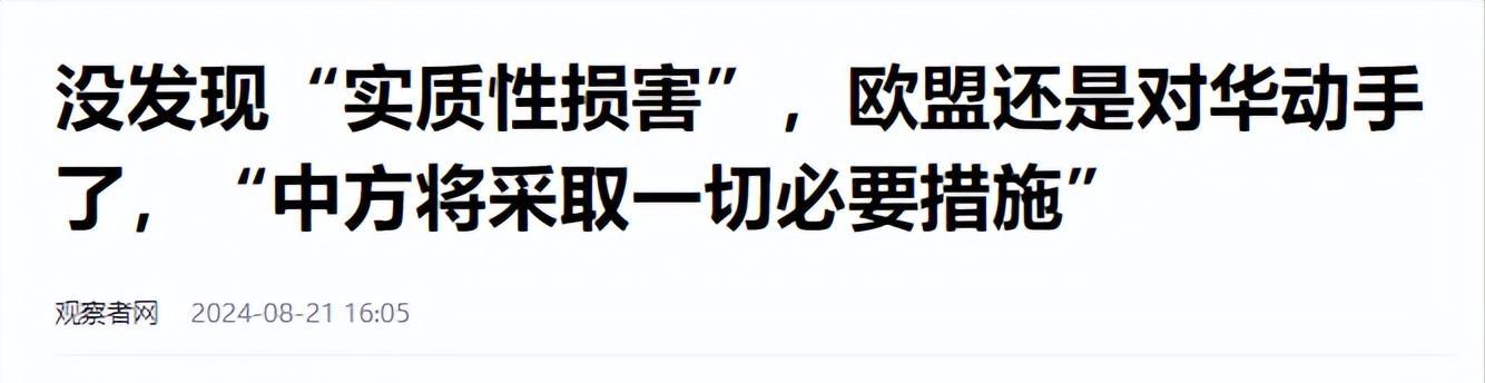 觀察者網 2024 8 21 沒發現“實質性損害”,歐盟還是對華動手了,“中方將採取一切必要措施”