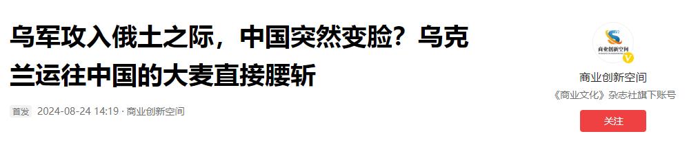 商業創新空間 2024-08-24 14:19· 烏軍攻入俄土之際,中國突然變臉?烏克蘭運往中國的大麥直接腰斬